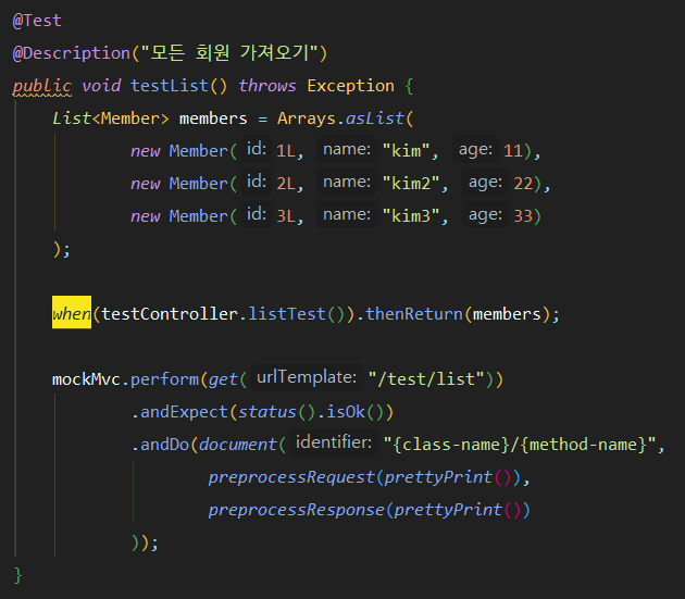 테스트 코드는 기존의 테스트 코드에 문서 부분만 추가하는 것이다.