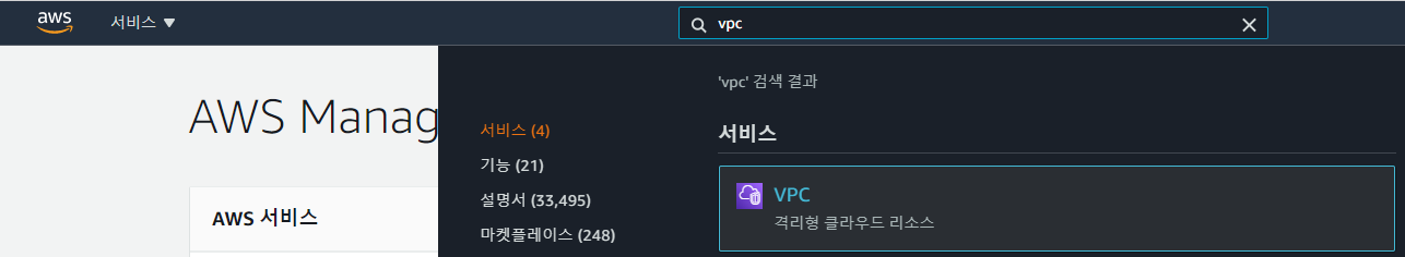 2. 왼쪽 메뉴에서 vpc를 선택한다.