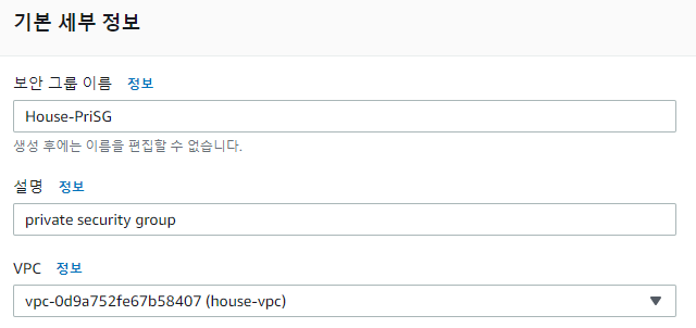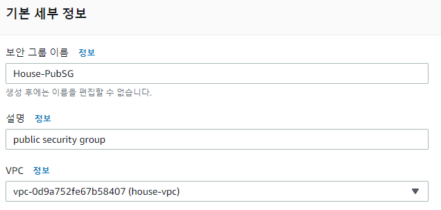 VPC 생성시 함께 만들어진 default 보안 그룹을 사용하여도 상관은 없다.