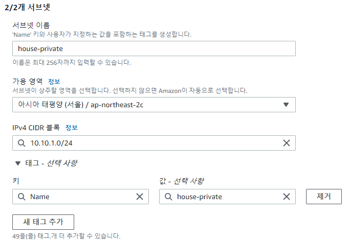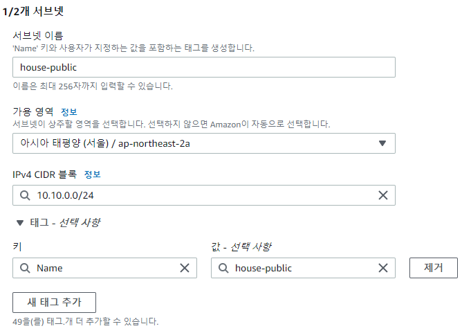 새 서브넷을 누르면 한번에 두개의 서브넷을 생성할 수 있다.
