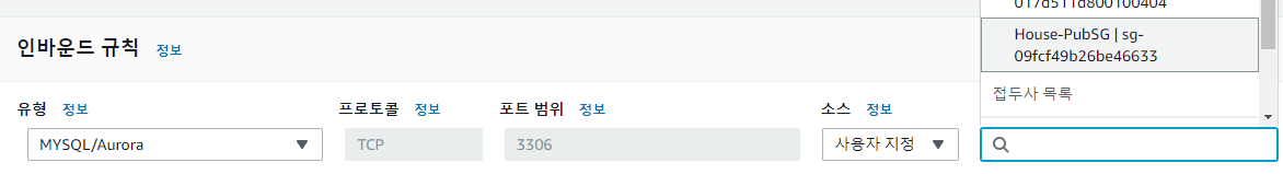 사용자 지정 옆의 빈 공간을 누르면 앞서 추가한 퍼블릭 보안 그룹이 나타난다. 선택해주자.