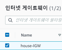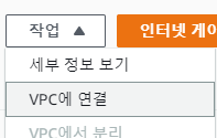 만약 찾지 못했다면 인터넷 게이트웨이 메뉴로 다시 들어가서 방금 만든 IGW를 선택하고 우측 상단에서 작업을 누른 뒤 [VPC에 연결]을 선택하자.