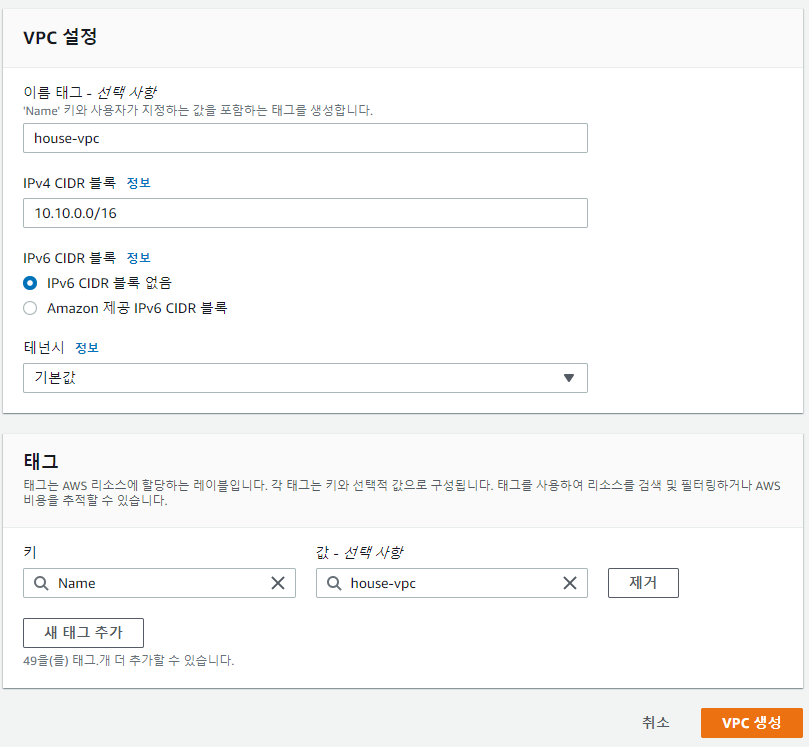 이름과 설명은 본인이 알아보기 쉽게 입력하고 VPC는 위에서 생성했던 VPC를 선택한다.