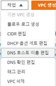 5. 다시 VPC 메뉴로 돌아가서 방금 만든 VPC를 선택하고 DNS 호스트 이름 편집으로 들어가서 호스트 이름 활성화에 체크해준다.