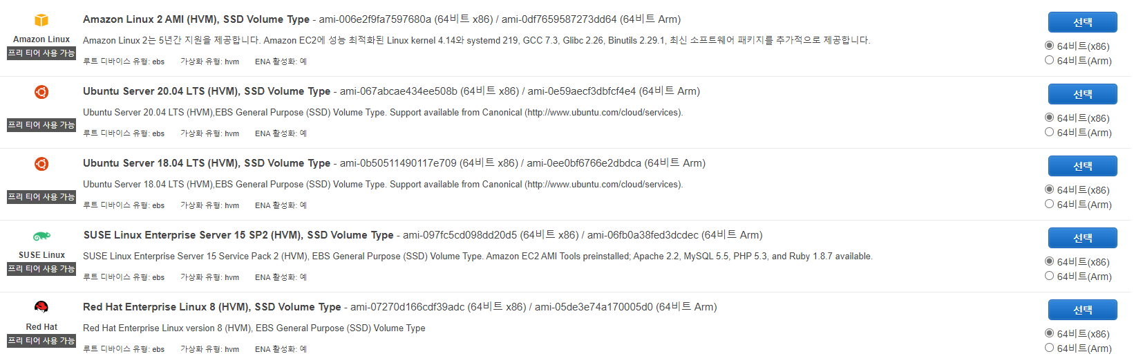 나는 프리티어이므로 Ubuntu 18.04 LTS 선택
