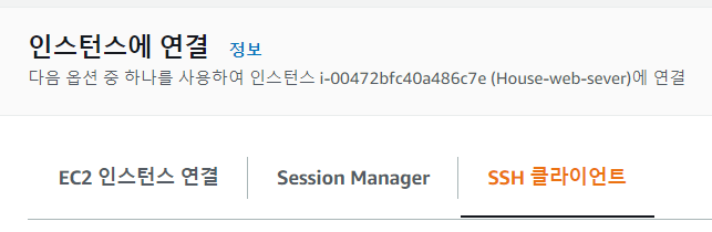 이걸 치기 귀찮다면 [인스턴스 우클릭] - [연결] - [SSH 클라이언트] 탭 선택