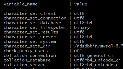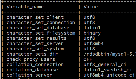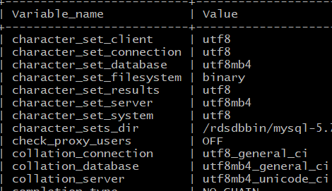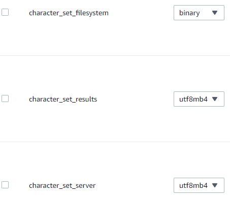 그리고 분명 모두 utf8mb4 와 관련된 값으로 설정했는데 RDS에 모두 설정되지는 않았다.정상 작동은 되지만 왜인지는 더 알아봐야겠다.