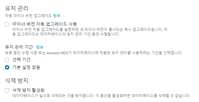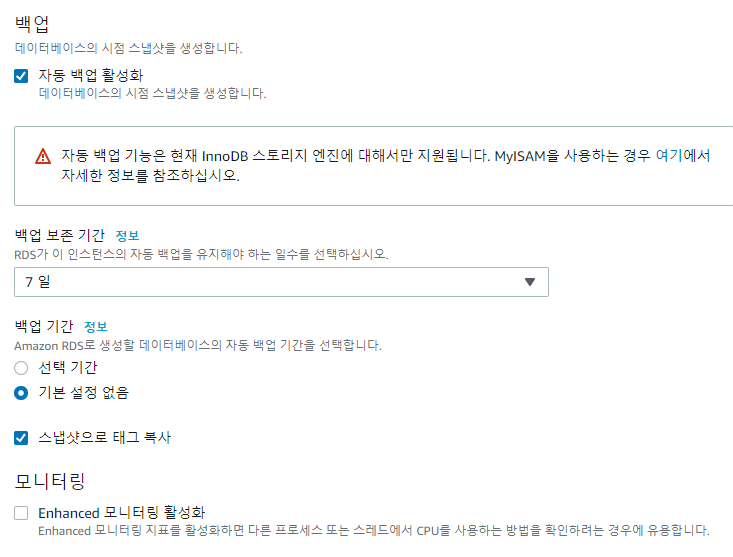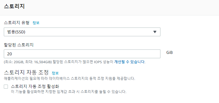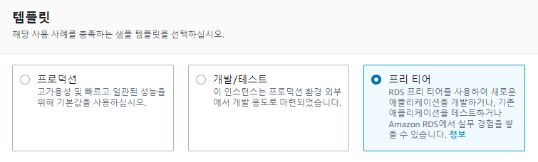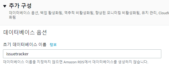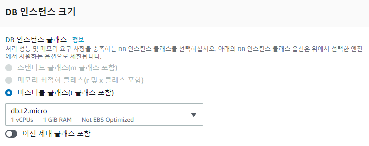 여기서는 RDS인스턴스의 사양을 지정