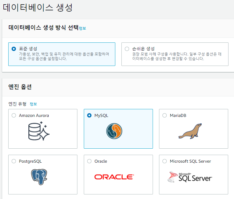 1. [RDS] - [데이터베이스] - [데이터베이스 생성]