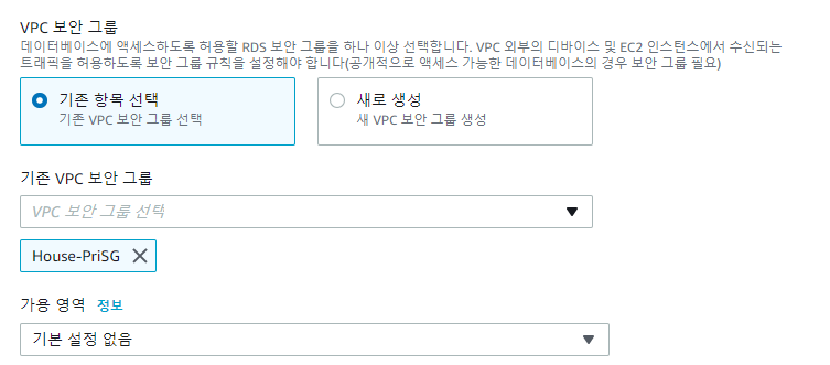 이전에 생성했던 프라이빗 보안 그룹 선택