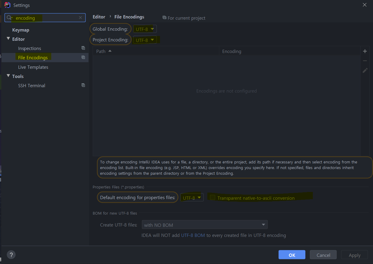 설정에서 인코딩만 수정해주면 됨