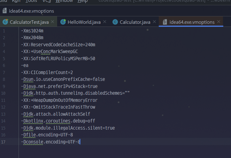 idea64.exe.vmoptios에서 맨 아래에