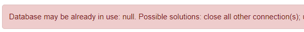 Database may be already in use: null. Possible solutions: close all other connection(s); use the server mode [90020-200] 90020/90020 (Help)